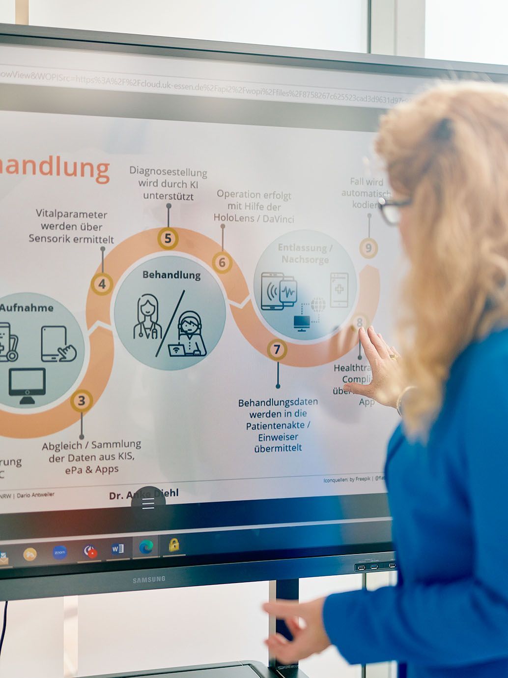 Einen normalen Alltag gibt es eigentlich nicht. Es geht ja um Innovation. Und Innovation ist immer ein Teamsport. Das ist unser Hauptfokus, denn gerade Digitalisierung bindet wirklich alle Professionen ein und wir brauchen diese Expertise. Früher war die Medizin sehr hierarchisch bestimmt und alles, was in der Versorgung geschah, war durch die ärztlichen Kolleginnen und Kollegen dominiert.